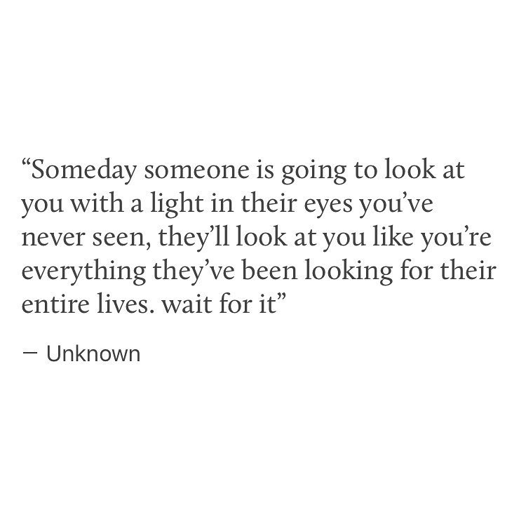 You don’t just have to wait for it you have to work for it. You have to make conscious your experiences of being loved, learn to love yourself, explore your fantasies, delve into your perfectionism, process your parents relationship with you and each other, spend time with yourself alone in the world and be with yourself in the therapy room until you see your own light and dark.